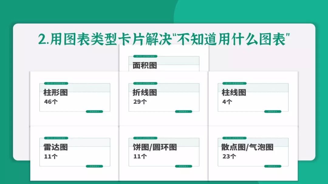 当您完全不知道该用什么图表时,建议从图表类型卡片入手,先确定图表类型,再确定具体样式。