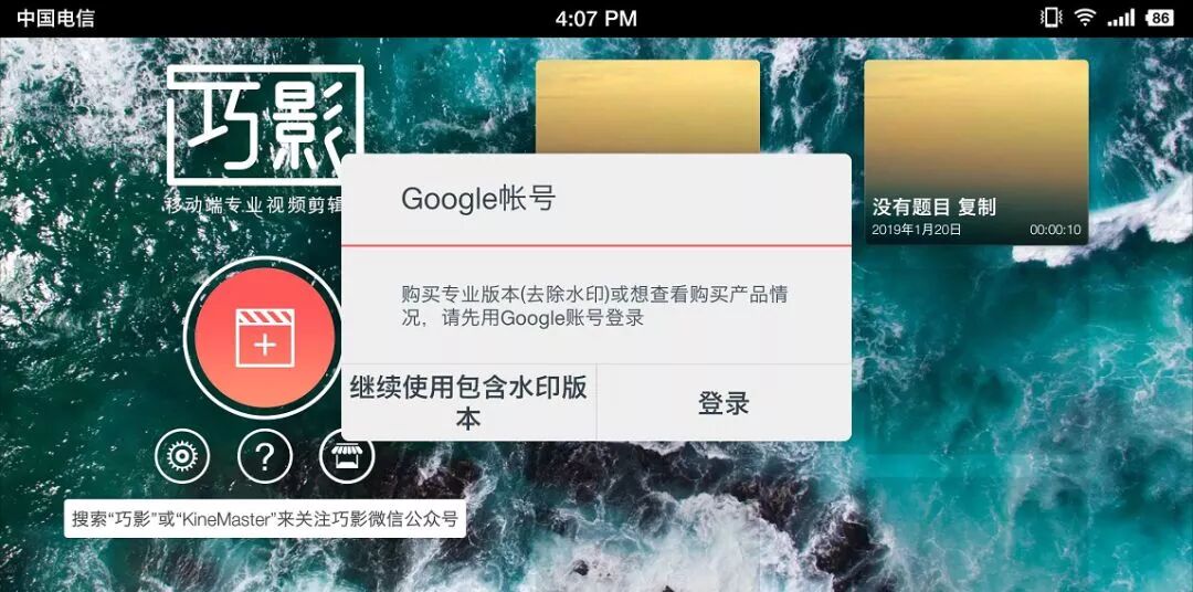 下载后打开自动变横版,方便剪辑。打开后不用登入,点击继续使用包涵水印版本,最后导出的视频是没水印的,请放心使用!
