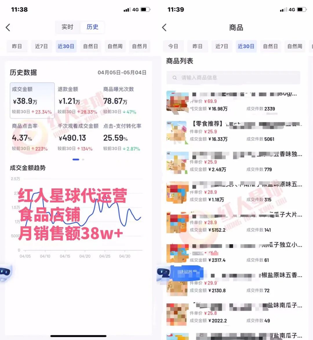 我们自营+代运营的店铺目前有200多家,如果,是其中部分店铺的数据截图: