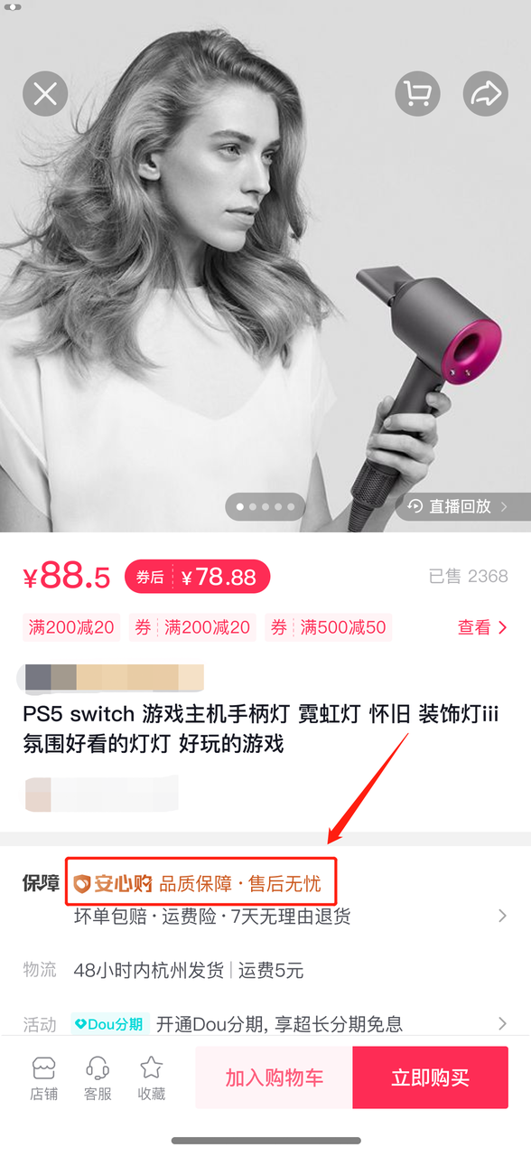 安心购开通之后,商品会出现一个安心购的标识,如下图: