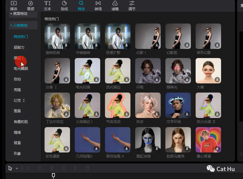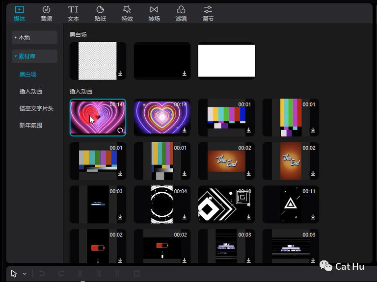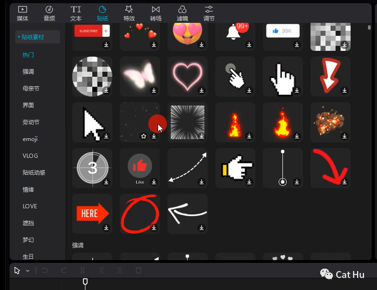 完全免费,无VIP。素材,文字,贴纸,特效,转场,等,全部免费