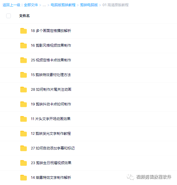 一、剪映剪辑教程目录【仅为其中一部分】