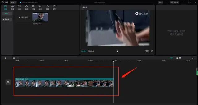 视频的素材是一段电视剧影像,小白用户可以先使用这类视频素材练手。我们先打开剪影(映)软件,然后随便添加一个视频素材,在添加完素材之后,我们就可以对视频进行分割操作了。如下图: