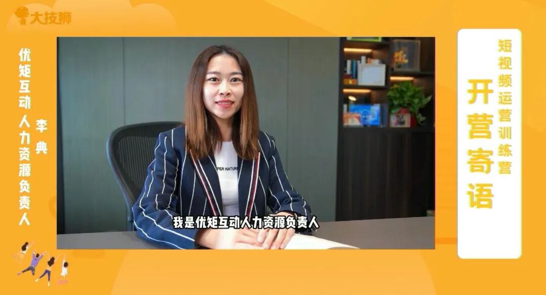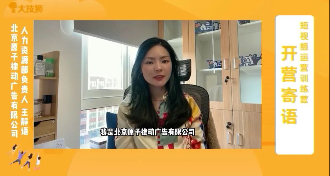 北京信息科技大学公共管理与传媒学院新媒体系讲师王琪老师给同学们做了开营致辞;大技狮(北京)科技有限公司创始人高颖睿讲述了大技狮的人才发展观并给同学们做了成长寄语;来自用人企业优矩互动和北京原子律动广告有限公司的人力负责人们和同学们分享了他们对于短视频行业的理解与商业思考;方片文化传媒的联合创始人包一泽(小包老师)作为课程主讲人描绘了短视频行业发展的蓝图,并表示了对同学们的勉励;大技狮明星实习生小黑同学回忆了自己的实习经历及拿到字节跳动实习offer的心得;大技狮课程总监汤琦为同学们介绍课程内容和学习安排。最后学生代表郭彤代表同学们抒发了自己对于这门课程的期待与认真学习的决心。希望通过该课程的学习,同学们能够和未来就业联系得更加紧密,对短视频运营相关岗位有更加深入的了解。