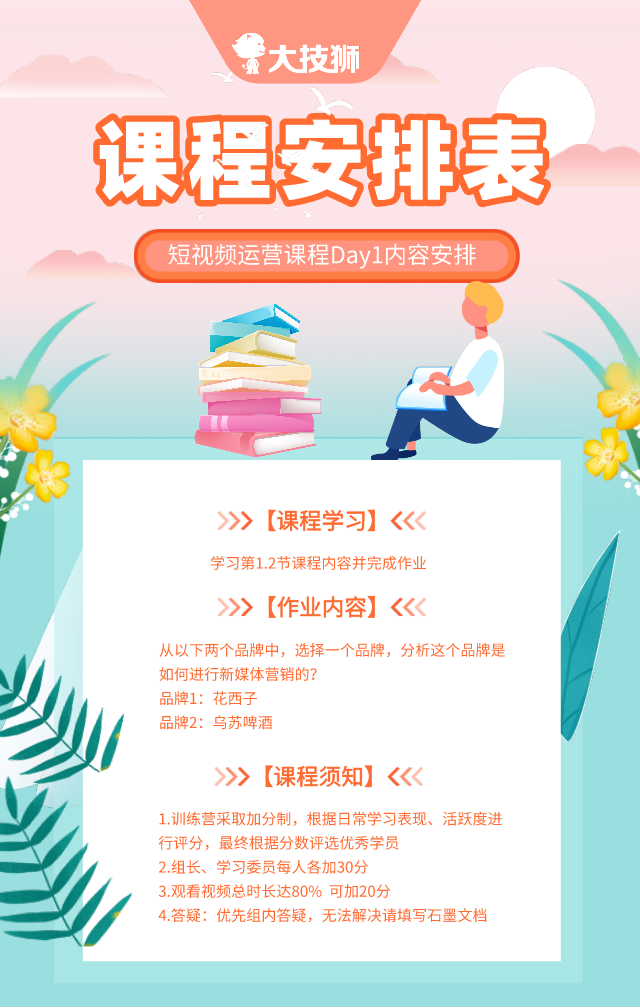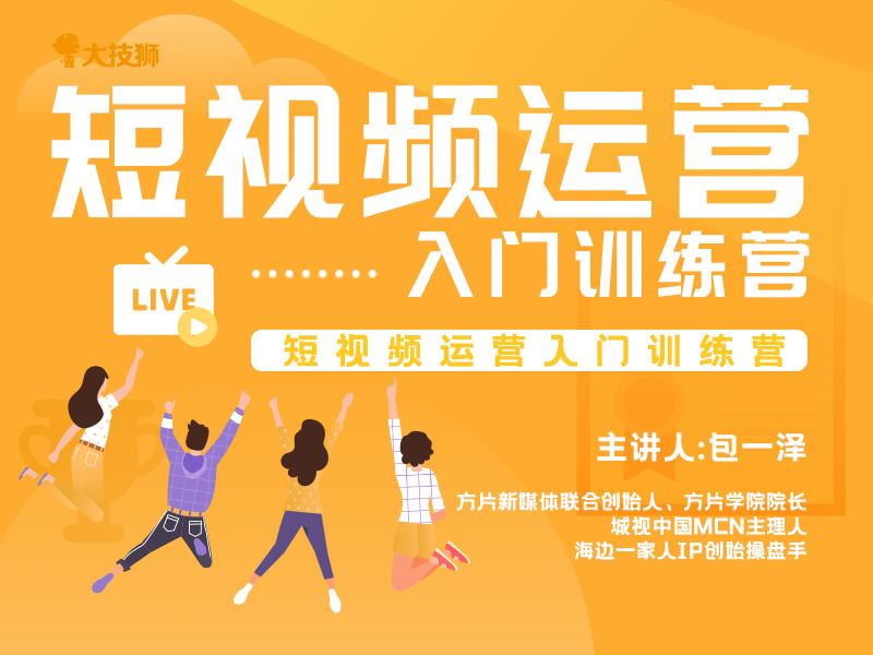 应行业需求,大技狮科技耗时数月,深度访谈了相关专家与自身从业者,打造了短视频运营入门训练营课程。通过学习新媒体营销概述、商业短视频解析与策划、商业短视频的制作与执行、商业短视频的运营的知识内容,初步把握新媒体营销的发展趋势,掌握短视频运营过程,从而初步胜任短视频运营助理或短视频博主的职能。