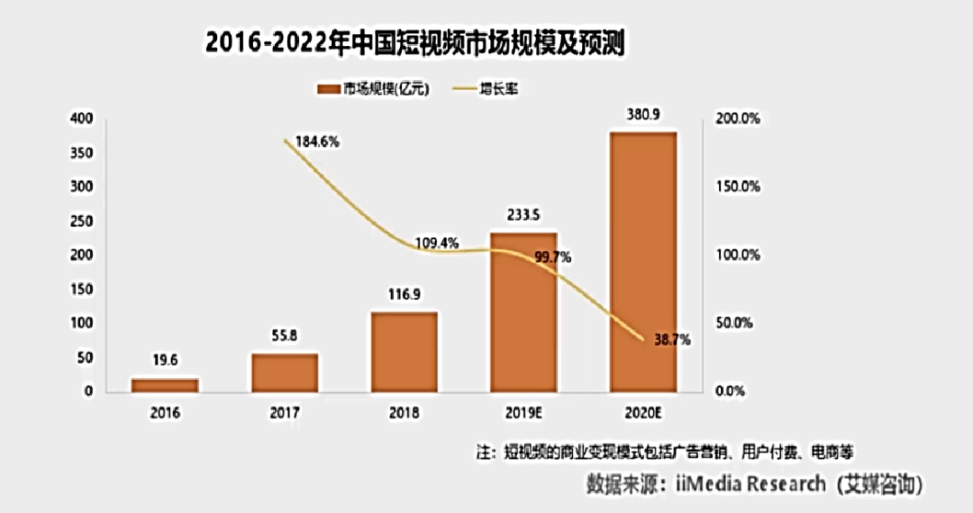 随着用户数量的提升以及短视频平台的发展,短视频运营需求快速增长,人才缺口不断扩大。艾媒资讯数据统计,2020年,短视频市场规模380亿元。根据火星研究院的估计,仅快手和抖音两个平台,网红通过短视频直播产生的广告收入大约有130亿左右,佣金达到800-1000亿人民币,未来5年人才缺口预计4000万。作为与视频传播范围、推广力度以及最终的用户反馈关系最密切的岗位,短视频在行业中的需求快速提高,已成为最有发展前景的行业之一。