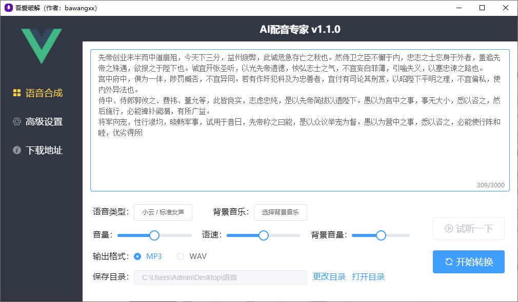 今天给大家分享的是永久免费的文字转语音工具软件来自吾爱大佬开发