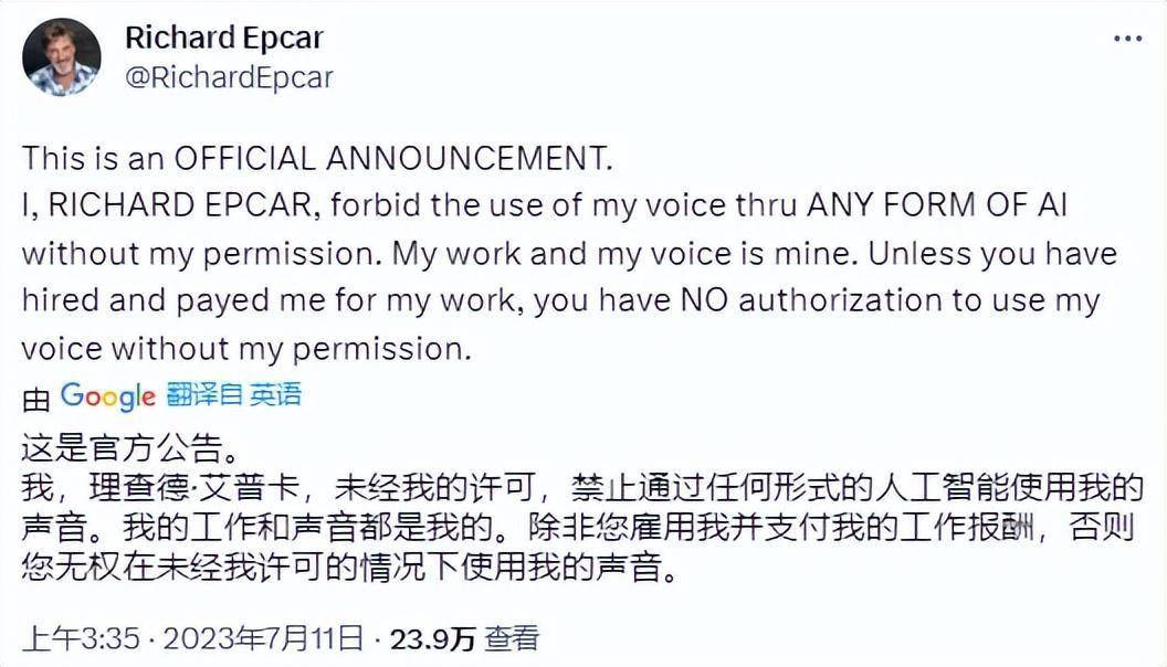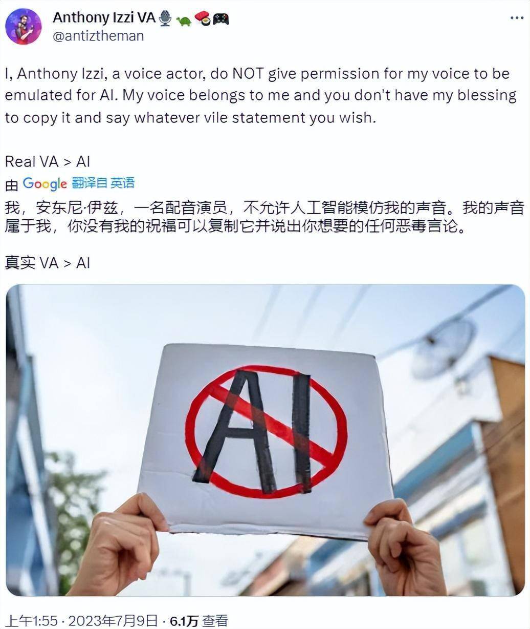 虽然AI声音的确在某些情况下提供了许多便利,制作者可以以更低的成本进行创作,但是从配音演员的角度来看,当AI无需经过任何许可或付费就可以模仿和复制他们的声音时,这无异于是摔了人家的饭碗。