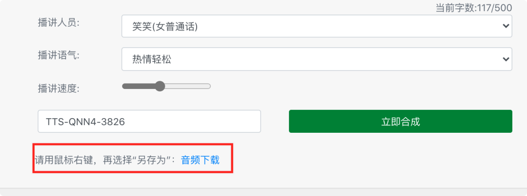 当按下立即合成后,稍待片刻,就能立即把音频下载到电脑(或手机)里,把更多时间,放在创作上吧!