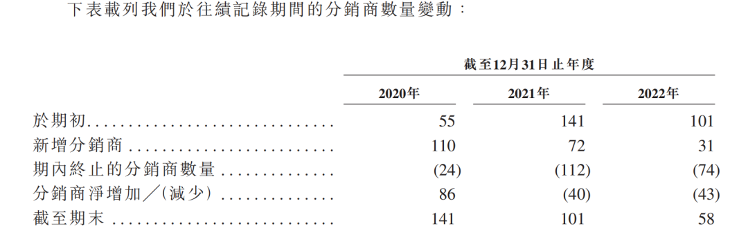 过去三年间,出门问问的经销商数量大幅下降,从2020年的141家锐减至2022年的58家。