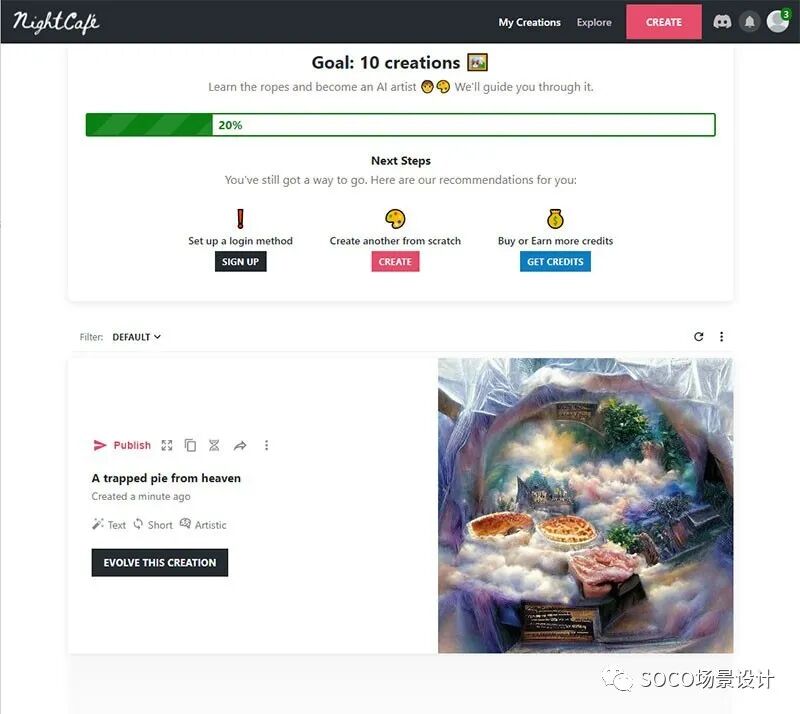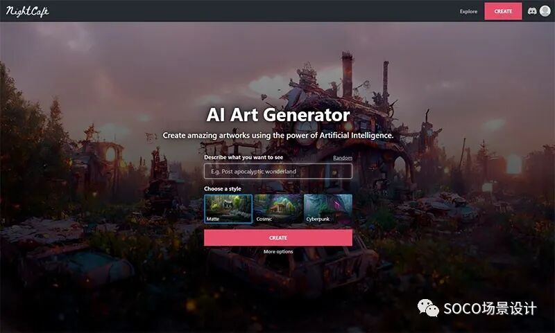 一款免费的人工智能绘画灵感生成器,你只需输入一段描述文本,自动生成对应场景的图片,AI绘画时代真的来了。网站链接:https://creator.nightcafe.studio