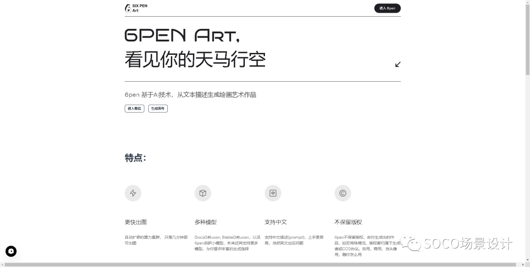 AI绘画是一套建构在计算机算法技术层面上的绘画表现,它并非在创造而是一种高度模仿;通过人工智能,打开绘画艺术的新领域,人工智能绘画通常神秘、绚丽、深沉、复杂、时代感强,体现出非凡的想象力。所以今天小编为大家找来了五款免费强大的AI绘画软件,为大家提供了各种强大的算法,绘制出各种独特的画作。以下软件网址画作已亲自测试确实好用,以下作品禁止商用版权归属soco场景设计所有。