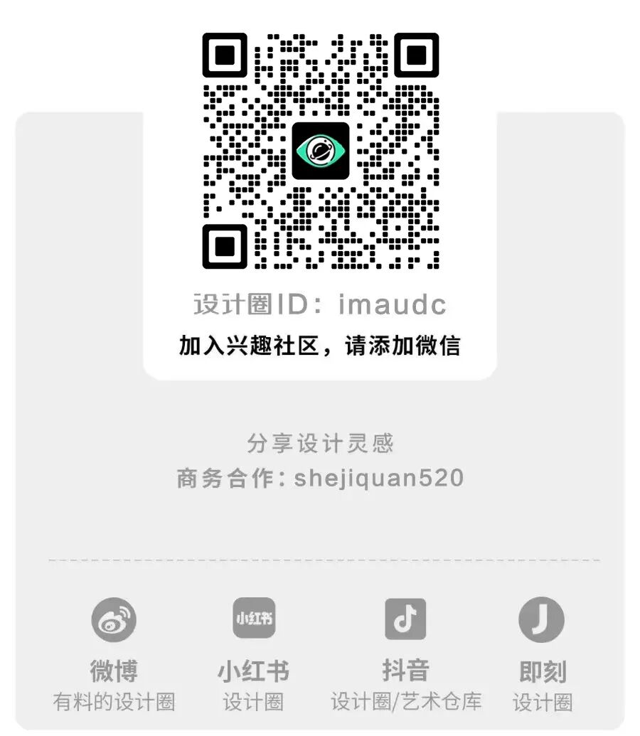 设计圈交流群:仅对星标设计圈公众号的用户开放。添加上方领福利的小编微信备注「设计群」加入。