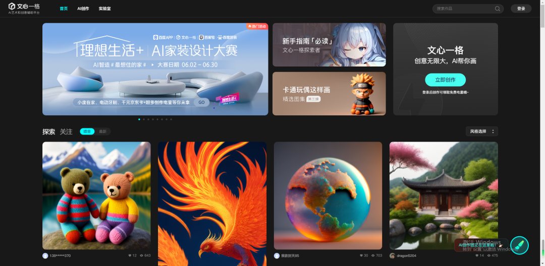 一个由百度出品的AI绘画网站,打开页面就可以看到各种已创作完成的AI图片,每个图片素材还提供了详细的文字描述,不知道怎么描述生成的话,还可以直接复制文字内容生成图片。