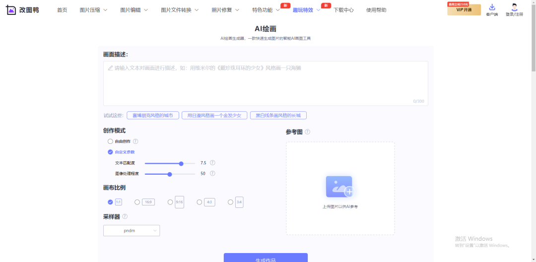 该平台是一款国产AI绘画工具,非常适合二次元绘画。