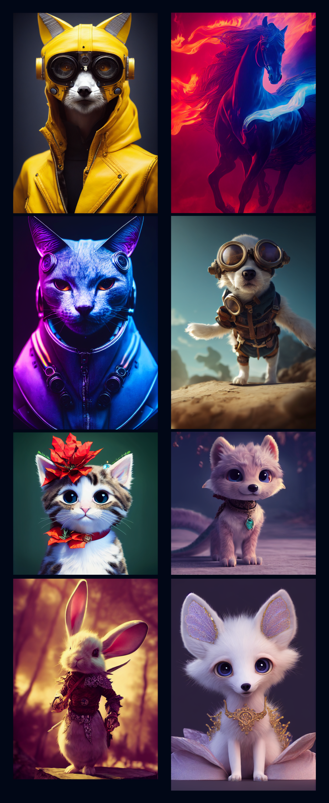 多种风格的动物关键词可供参考。