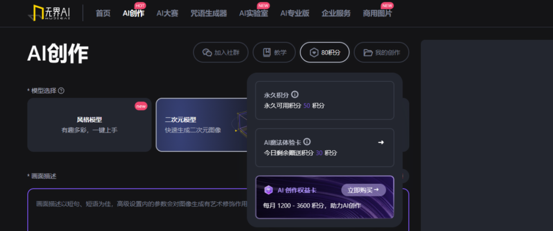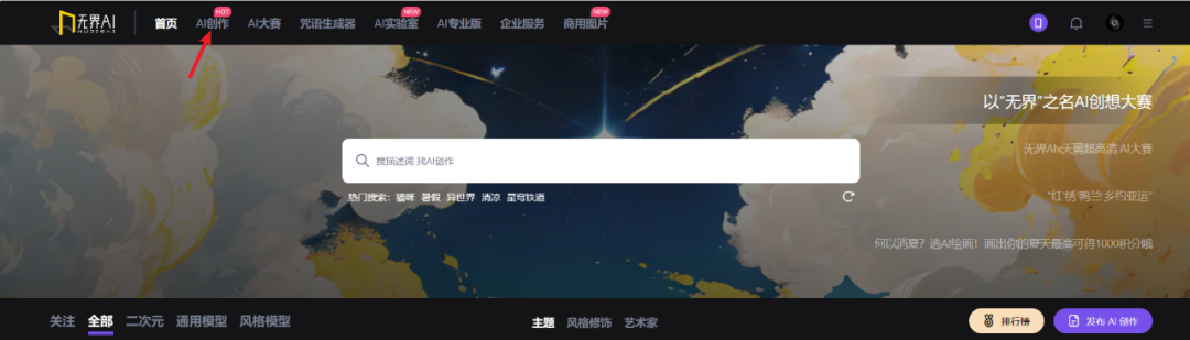 登入网站之后,选择箭头所指的AI创作。