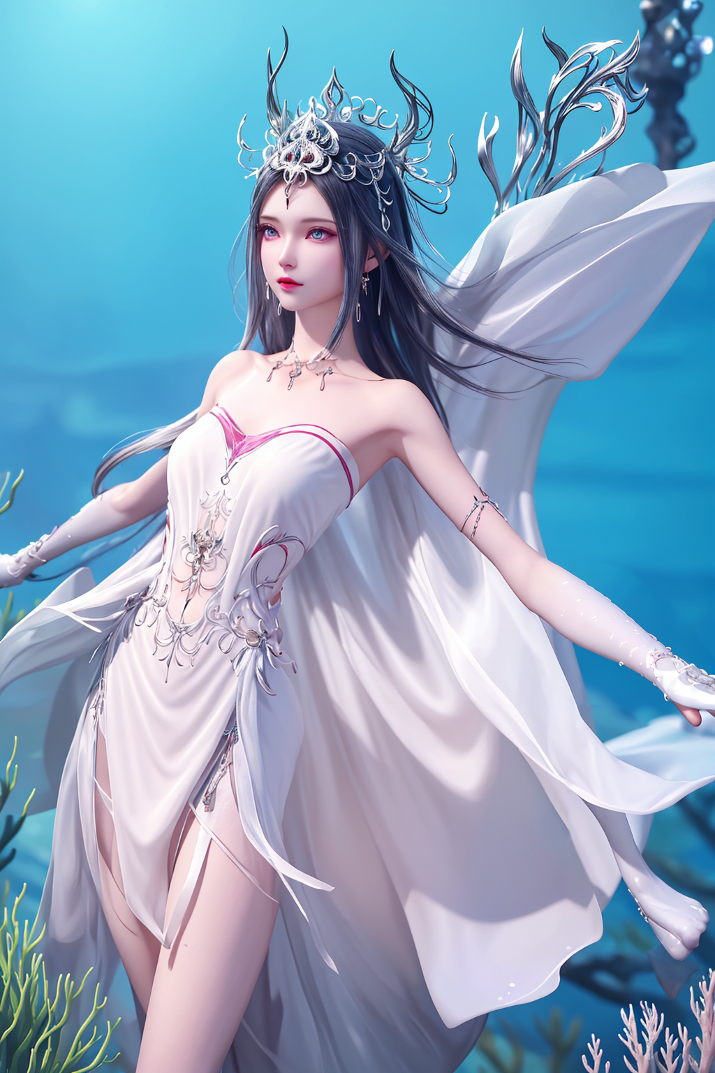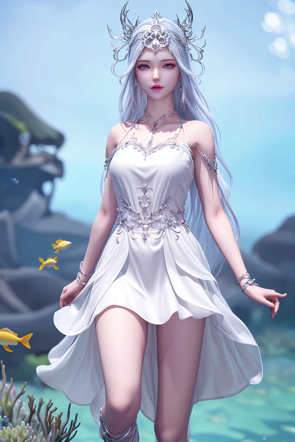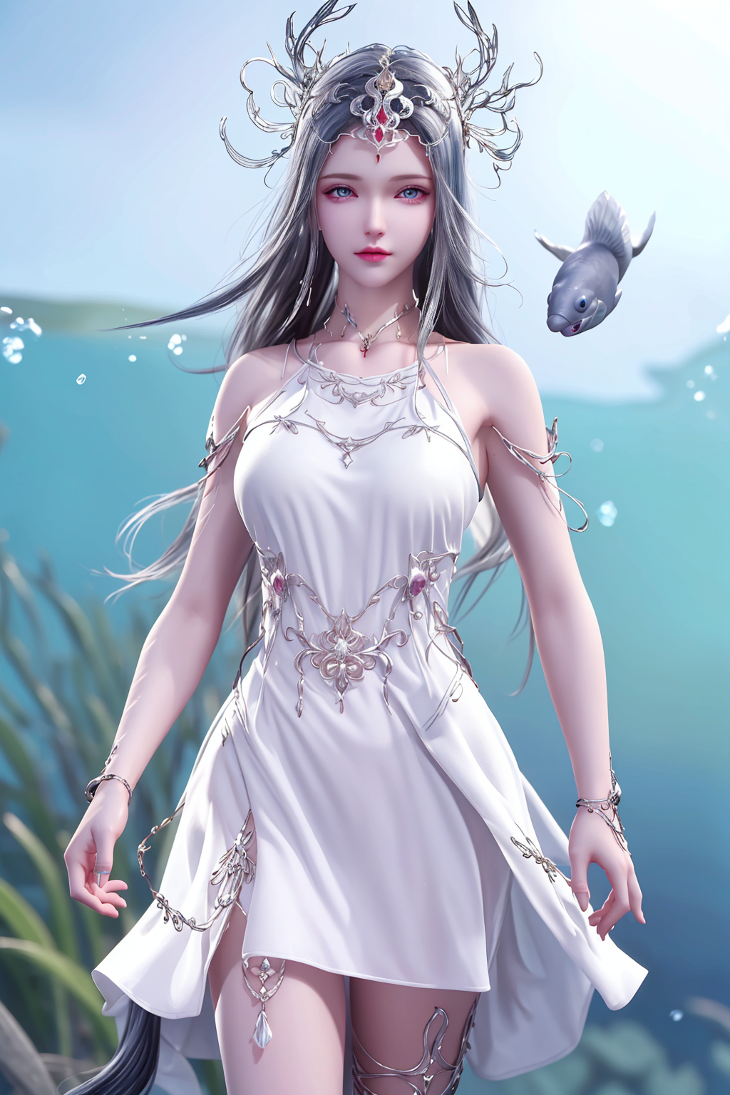 波塞西是一位非常优雅和高贵的角色。她拥有美丽的蓝色眼眸和银白色的长发,继承了她作为蛇魂兽的特殊基因。她的皮肤如同白玉一般光滑,身材曼妙动人。她总是散发着一种淡淡的幽香,给人一种清新而迷人的感觉。