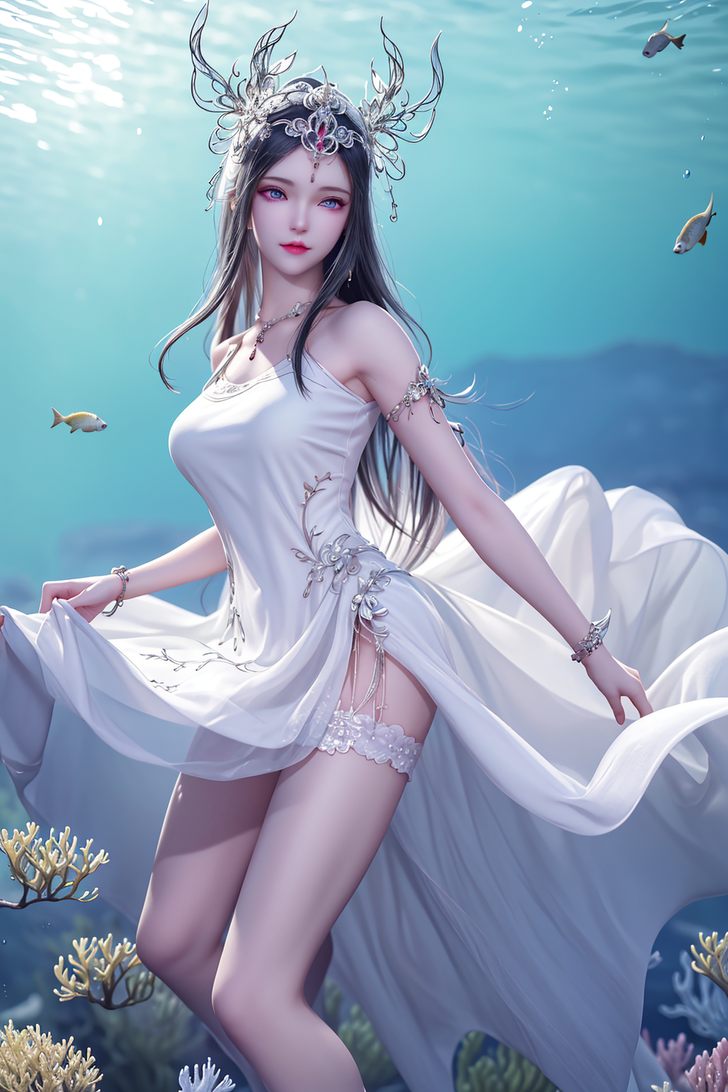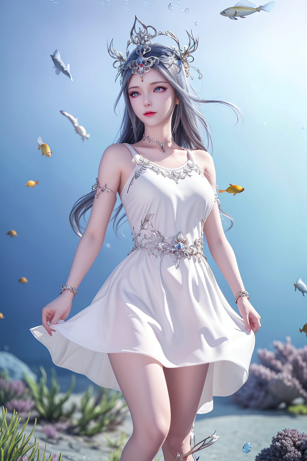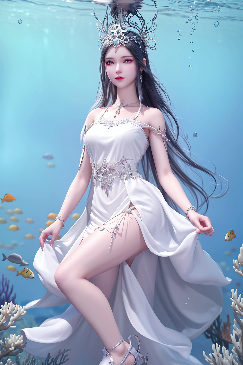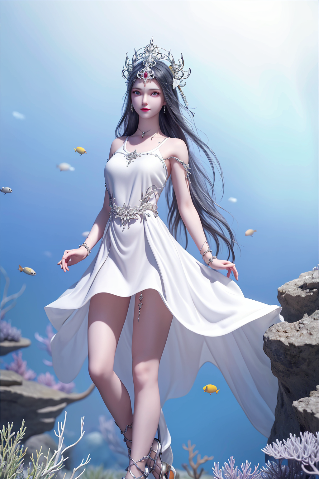 波塞西是一位非常优雅和高贵的角色。她拥有美丽的蓝色眼眸和银白色的长发,继承了她作为蛇魂兽的特殊基因。她的皮肤如同白玉一般光滑,身材曼妙动人。她总是散发着一种淡淡的幽香,给人一种清新而迷人的感觉。