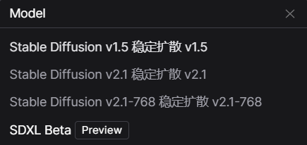 左侧是命令功能区:包括模型、样式选择,提示语,上传图片、生成图片数量等设置命令。