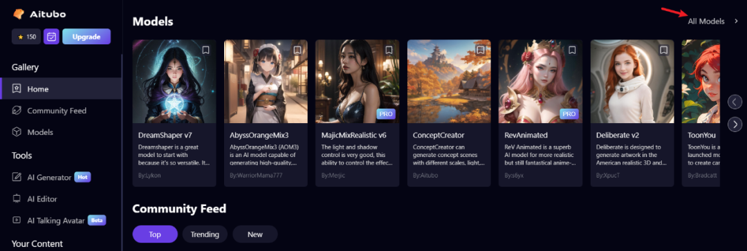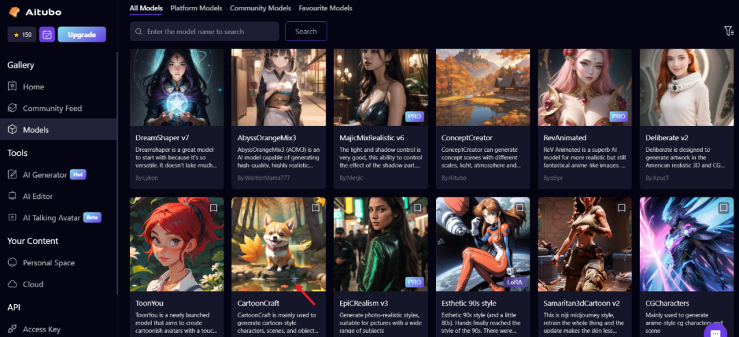 在上图的界面,选择箭头所指的所有模型,你就可以看到目前网站支持的绘画模型都有哪些。
