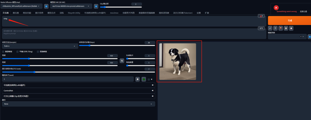 参数界面上的与我保持一致,提示语大概填一下,比如1dog,就会画出来一只狗