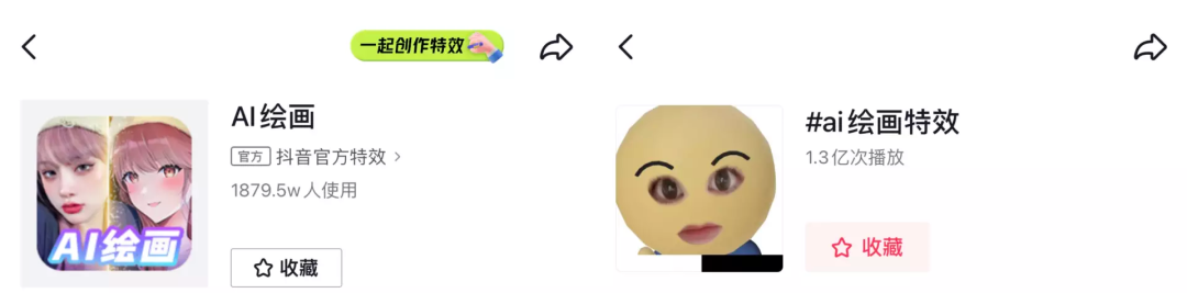 截至发稿前,AI绘画的抖音特效已有超1879.5万人使用,相关话题抖音播放量超过1.3亿次。