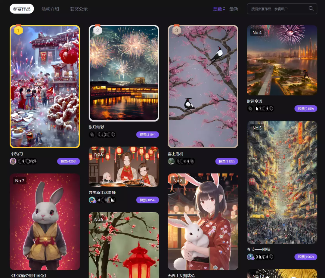 新榜编辑部发现,国内涉足AI绘画的初创企业除了持续迭代产品之外,还会建立自己的社区,在线上线下开展各种运营推广活动。比较常见的是发起AI绘画主题征稿活动,通过现金、绘图积分、实物奖励等方式激励用户创作,招募和孵化AI绘画领域的KOL。