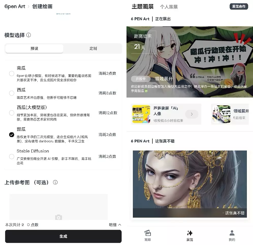 6pen AI绘画和展览页面