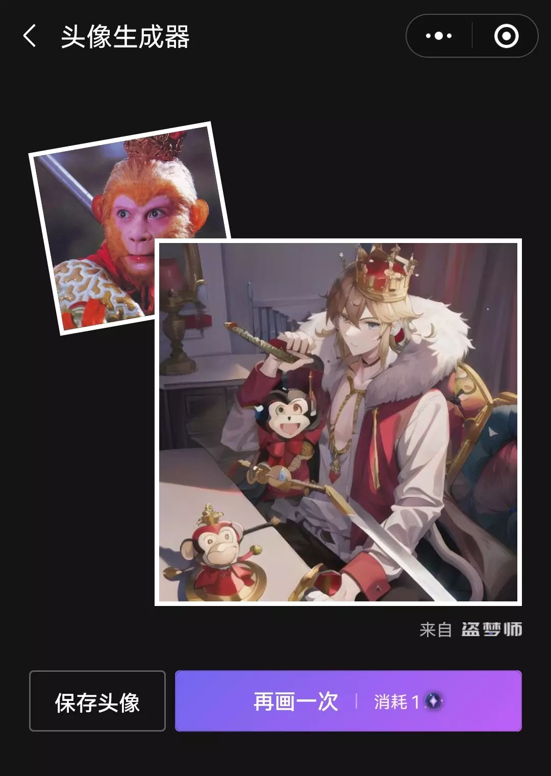 比如盗梦师抖音小程序上线的异次元头像入口,上传参考图即可秒速出图。