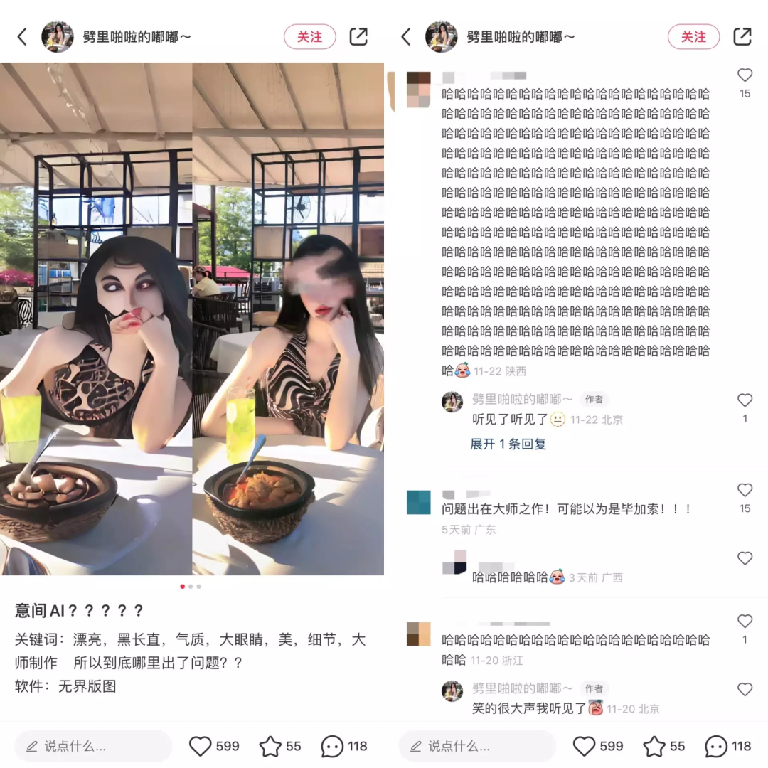 新红数据显示,小红书ai绘画相关笔记近30天新增1.47万篇,累计篇数超过20万,其中左滑看原告AI我真的会谢!AI你没事吧?等自我调侃的话语经常在相关笔记中出现,单篇笔记最高点赞量达到8.71万。