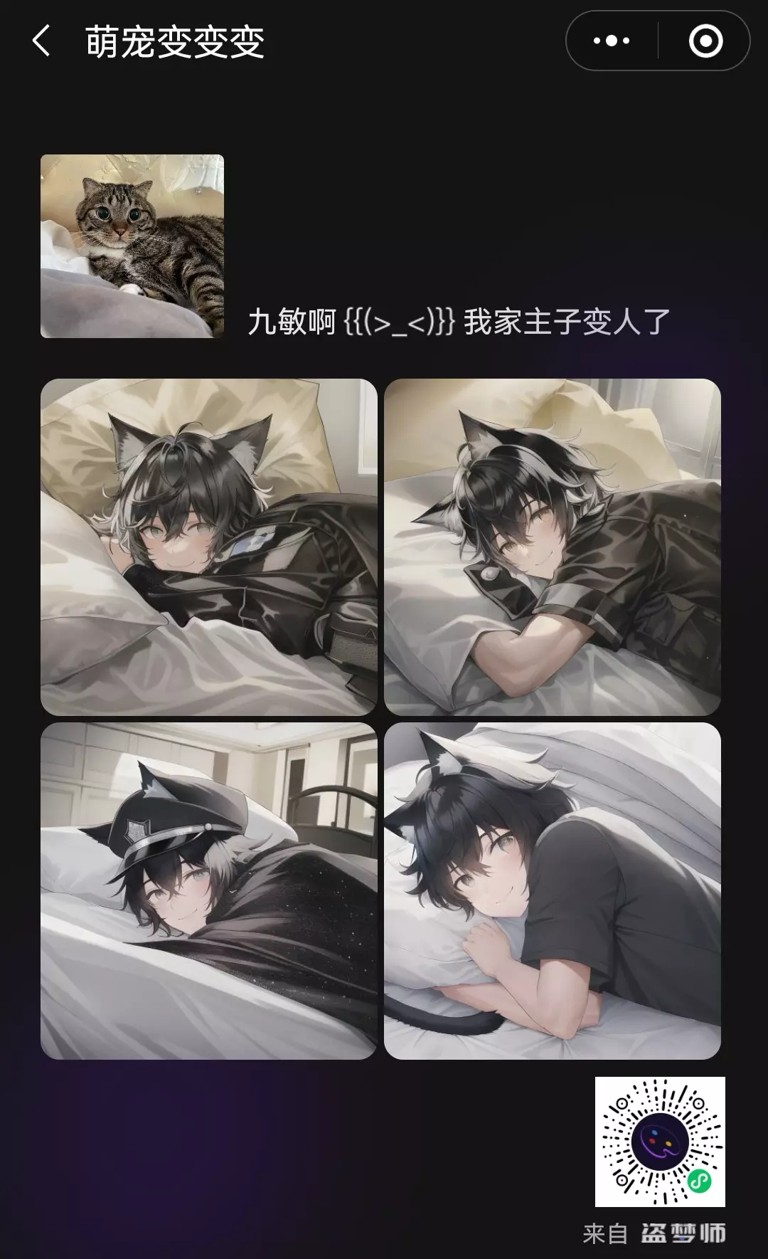 除了人像,盗梦师也为小动物提供了专属入口萌宠变变变,可以生成个性化的拟人图。