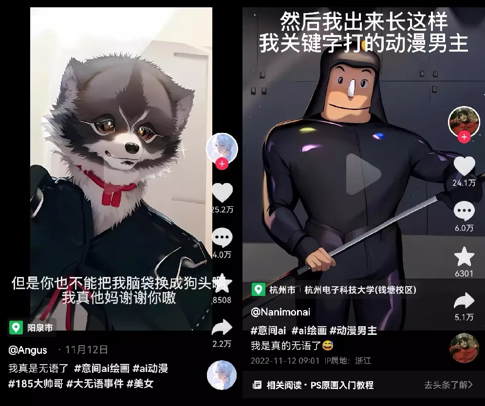 剪映推出多种风格的AI绘画玩法后,抖音上线了操作更便捷的AI绘画官方特效,明星、头部博主带头拍摄,AI变抽象派的来这集体发声驯服AI绘画不翻车公式等相关话题都登上热榜。