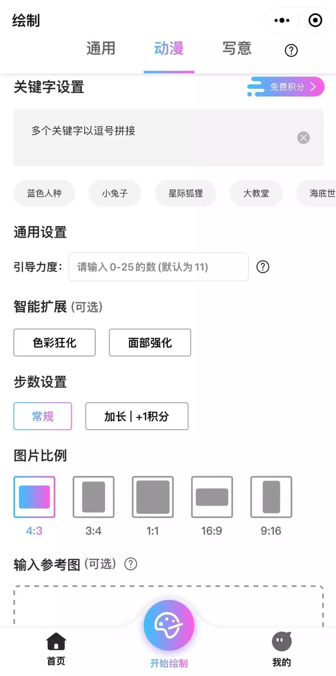 以意间AI绘画小程序为例,第一步,挑选一张你喜欢的照片;第二步,设置绘画效果的参考关键词;第三步,等待AI尽情创作(搞事)。