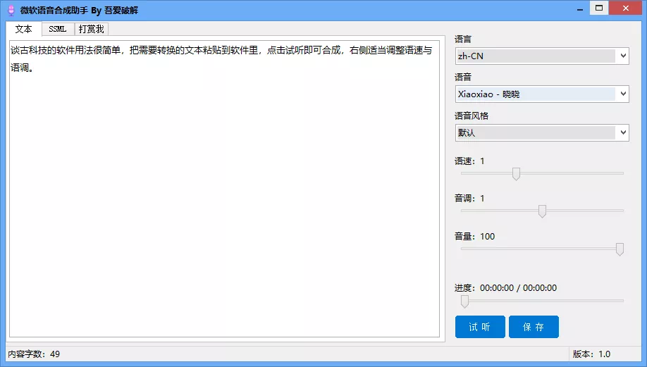 软件还支持SSML(语音合成标记语言),如果你对配音的语气和风格有特殊要求,可以自己修改代码,不过你需要有一定的编程功底才行哟!!