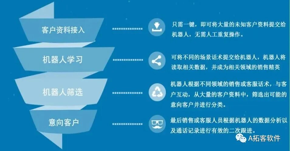 1、代替人工快速的筛选意向客户,人工一天打200-500通电话,机器人每天可以自动拨打3000+以上电话,相当于5-10个人工一天的工作效率。