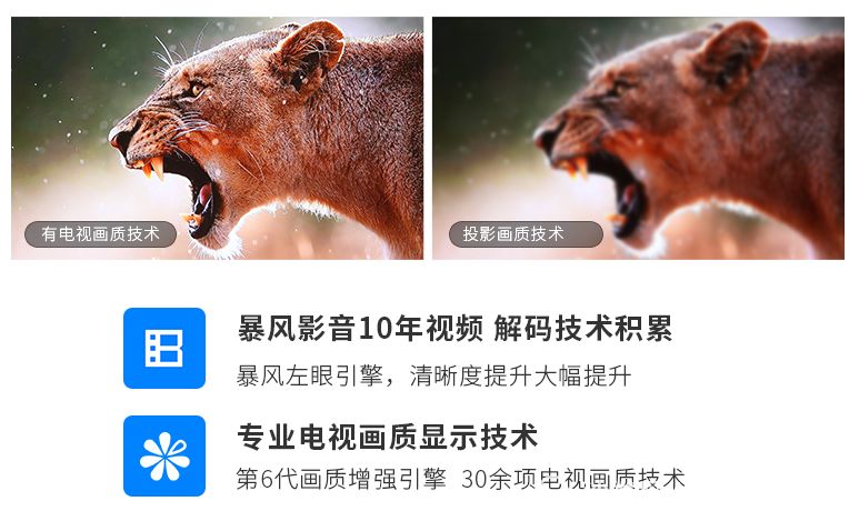 暴风TV曾经在去年公布了一款AI无屏电视,将暴风TV上使用的广受好评的AI大耳朵语音助手和投影技术结合,搭载了这款没有界限的无屏电视。现在这个系列第二款产品Real 6正式亮相。