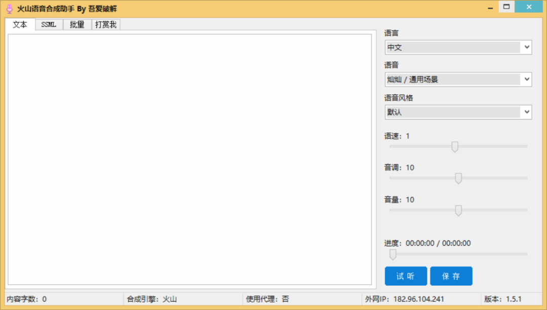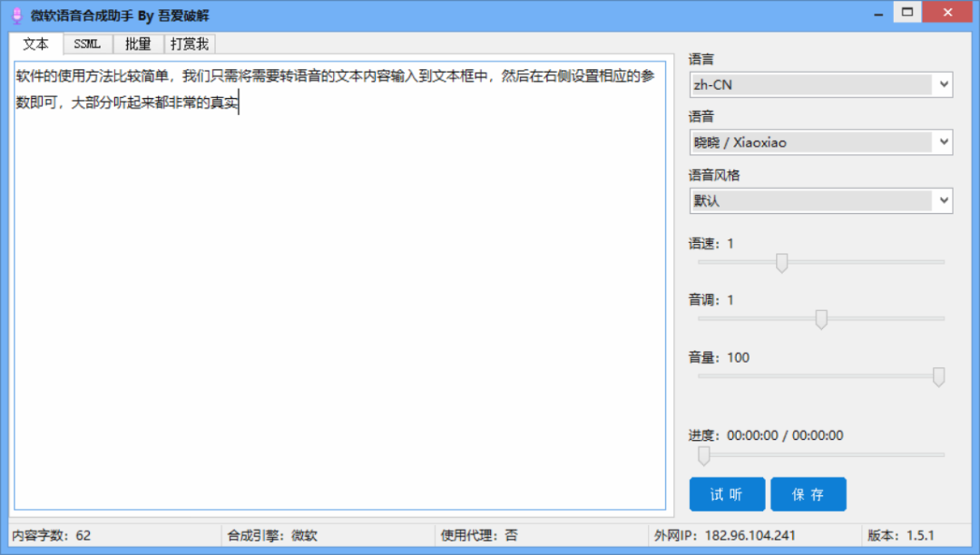 软件的使用方法比较简单,我们只需将需要转语音的文本内容输入到文本框中,然后在右侧设置相应的参数即可,大部分听起来都非常的真实