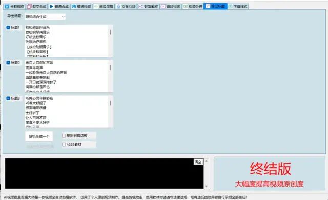我一直坚信自媒体才是年轻草根创业者的出路,不需要技术门槛,不需要每天思考创作,只要会剪辑视频就可以,AI合并素材干货但是还是会难住一部分人,可能是他们不会使用看着界面略微复杂的PR、AE等视频制作软件,由此我就开始着手写出一款一键即可生成高质量原创视频的剪辑软件,AI剪辑短视频软件让大家不管是什么学历,什么文化水平,只要你会使用电脑即可一键创作,同时实现高速批量执行,一个人也可运行几十上百个账号,轻松实现批量收益,同时生成的原创视频还可以多平台分发,大家应该都知道,自媒体平台也有很多,AI合并素材干货比如:今日头条、百家号,大鱼号,企鹅号,爱奇艺号,搜狐号等等,都是可以通过发布原创视频带来收益的平台。
