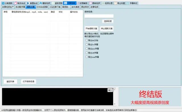 3:音频或视频提取文案,把音视频中的人声提取出来转为文本格式(txt、lrc、ass、vtt、ssa)