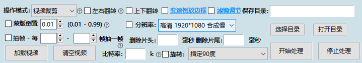 支持视频裁切、左右翻转、上下翻转、加速/减速、加滤镜、加蒙版、抽帧、片头/片尾删除N秒、视频旋转等。