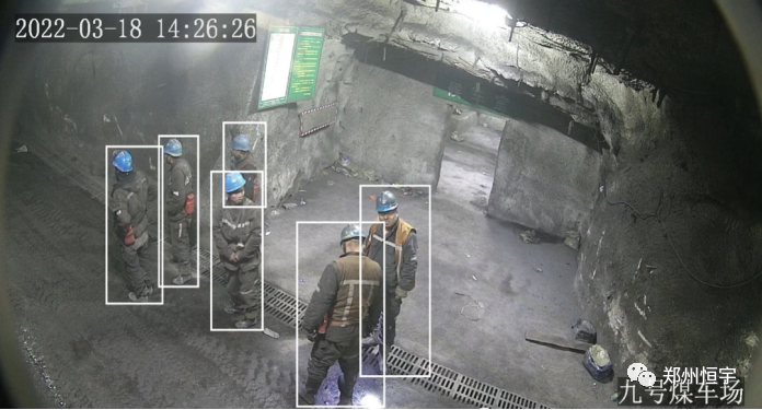 当重要位置安装摄像仪,识别到人的不安全行为及设备的不安全状态(如大块煤、运输杂物、水煤、危险区域闯入等),地面服务器报警,并截图上传服务器。