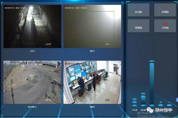 展示矿端视频接入在线、离线情况的统计。实现对矿端视频分析报警情况的统计,移动传感器报警、对传感器吹风报警、摄像头遮挡或挪动角度报警、人员入井异常情况报警。同时可将信息展示到相关大屏。