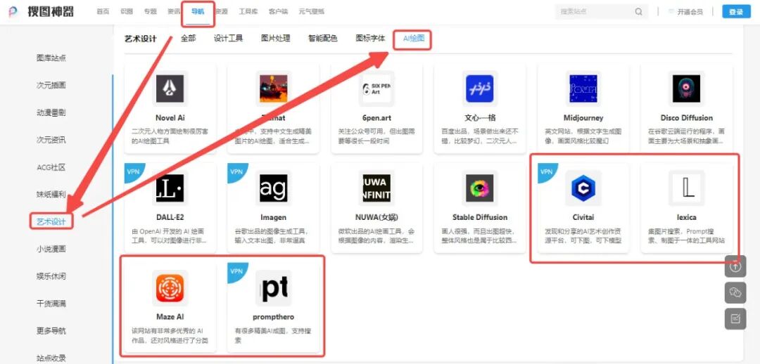 Prompt搜索、制图于一体的工具网站