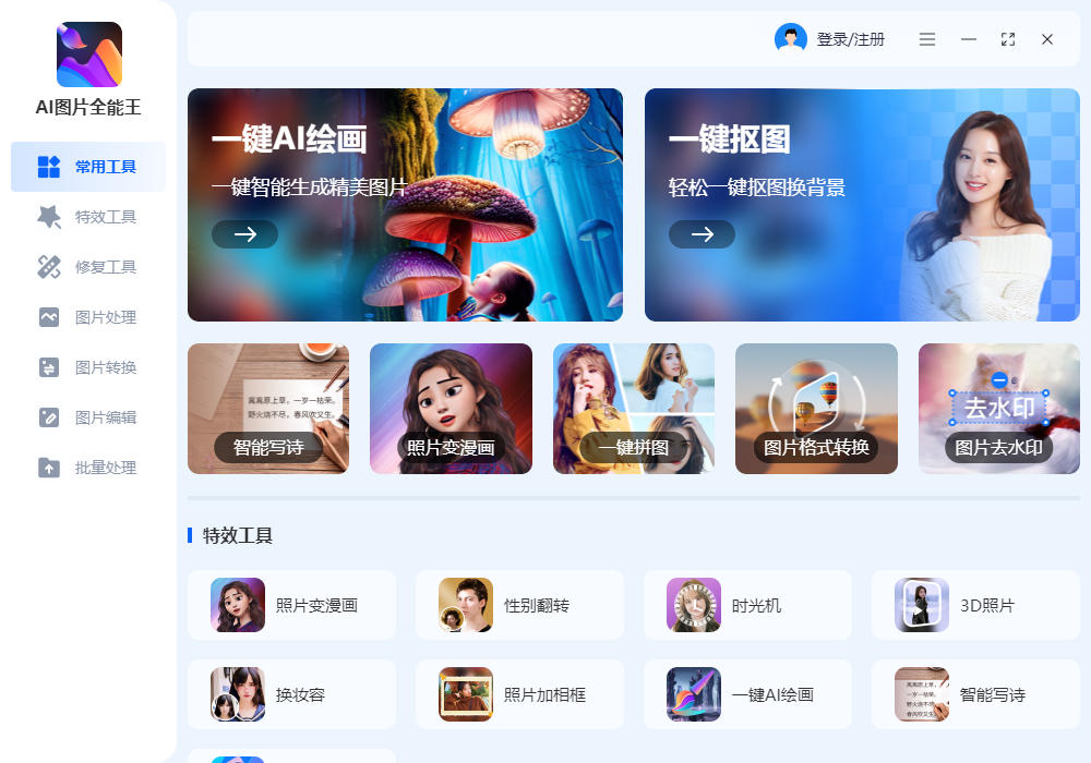 软件简介:AI图片全能王是一款功能丰富且实用的软件,它具备了多种图像处理和编辑功能。