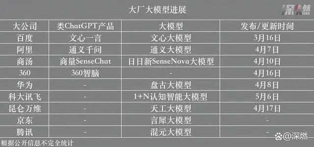 ChatGPT引发的大模型热潮依然汹涌。从上周末开始,各大企业AI大模型落地的消息接踵而至。4月7日,阿里云自研大模型通义千问开始邀请用户测试。4月8日,京东集团副总裁何晓冬称将在今年发布新一代大模型ChatJD,同日,华为云介绍了盘古大模型的进展和应用。4月9日,基于360GPT大模型开发的人工智能产品矩阵360智脑率先落地搜索场景。更多的AI大模型正在飞奔而来的路上。腾讯、字节跳动、同花顺等企业的AI大模型产品近日将会陆续亮相。