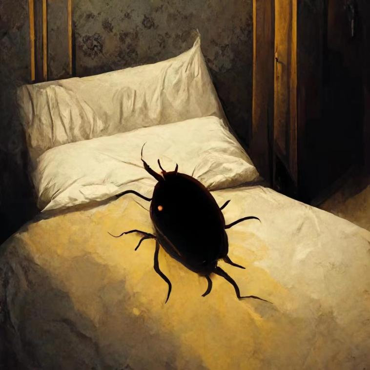 这是去年十月我初次接触midjourney并尝试制作的画面,输入卡夫卡《变形记》第一段话后产生的画面,那时我感觉新时代确实来了。