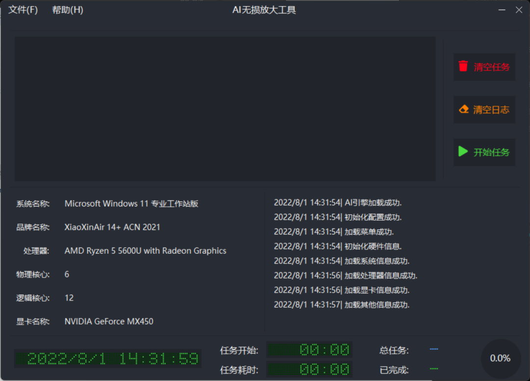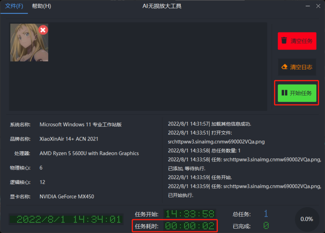 使用方法很简单,把想要修复的图片扔进去,点开始任务就可以了。