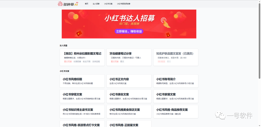 多种草是一款免费在线小红书AI创作工具,专为自媒体博主、市场运营设计的 AI 智能创作平台,服务自媒体工作者在抖音、小红书、微信等全平台文案及图文撰写,目前可以用来小红书风格标题生成、小红书文案生成、种草文案生成、探店视频等,目前无需注册登录,即开即用,非常不错。
