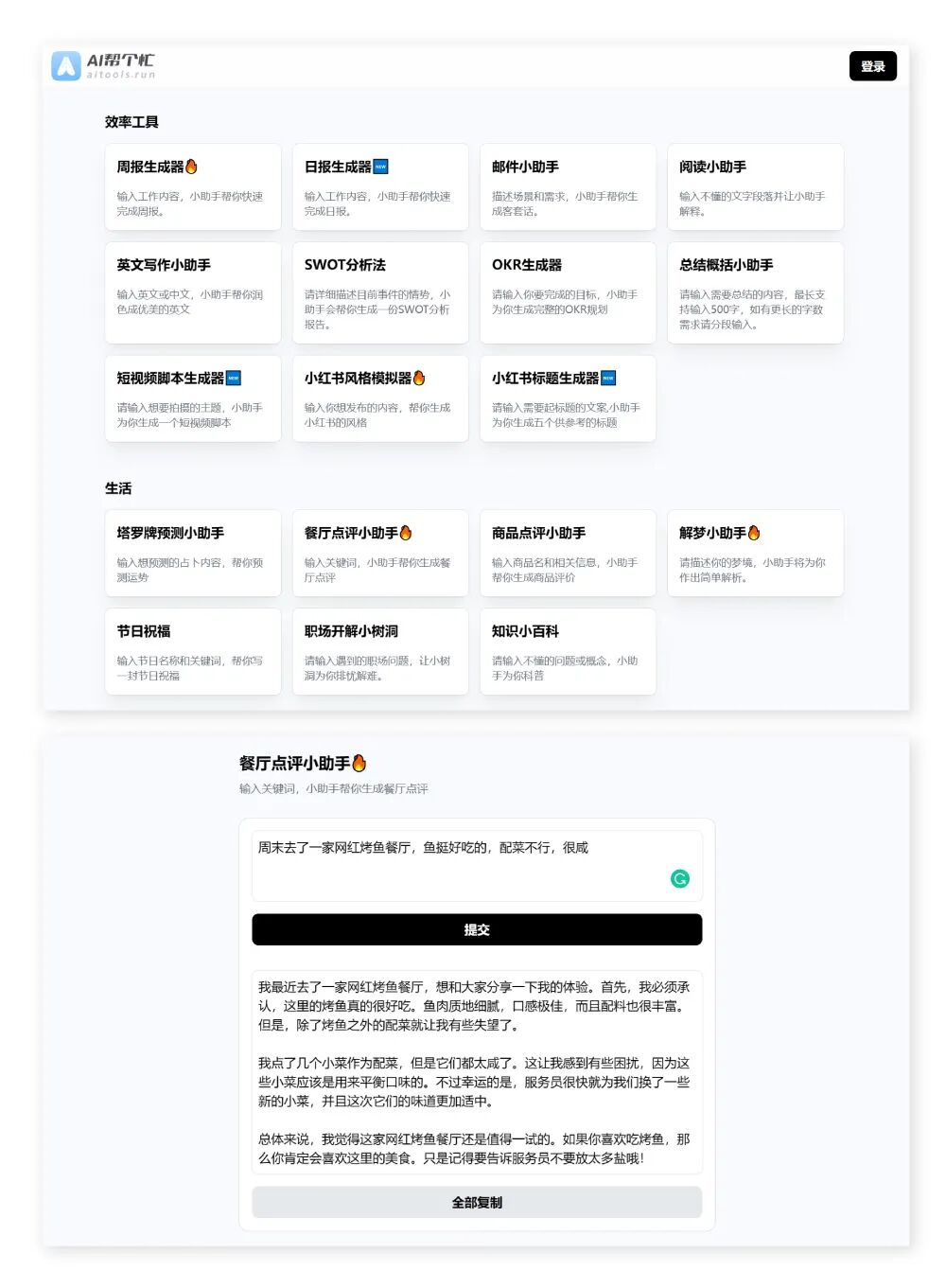 自 ChatGPT 公布后,各种基于其 API 开发的应用就像雨后春笋般迅速出现,之前「优设 9 图」为大家介绍的AI 帮个忙就是其中之一。它里面收录了 20 多个免费的文字实用小工具,比如周报/日报生成器、邮件生成器、英语写作助手、小红书风格模拟器、夸夸小助手等。你要简单地描述一下想写的内容,AI 帮个忙就能把剩下的部分补全,而且结构清晰、形式完整、风格贴切,用协助自己处理日常工作生活中文字工作再合适不过了。